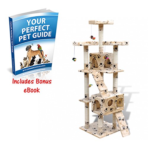 All images of Cat Tree Scratching Post With 2 Condos In Beige With Pawprints Entirely Covered With Very Soft Plush And Sisal - It Provides Your Cats With So Many Features - Your Cat Can Rest Comfortably & Can Hide Safely By eCommerce Excellence