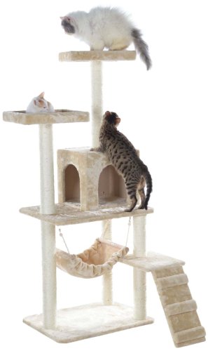 GleePet GP78570921 Cat Tree with Ramp, 57-Inch, Beige