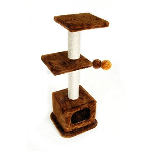 Standard Cat scratcher number 1 color 2, plush covered cat scratcher with sisal posts, cave, shelf and lair