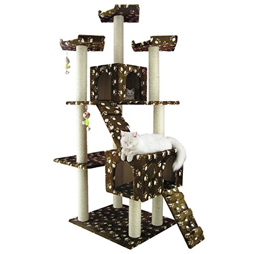 Cat Scratch Scratching post with plush in Brown with White PaW