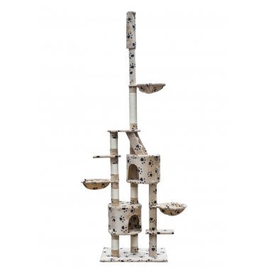 All images of Cat Tower In Beige with Paw Prints With Adjustable Height Covered With Very Soft Plush Fabric And Sisal - It Provides Your Cats With So Many Features - Suitable For Multiple Cats - By eCommerce Excellence