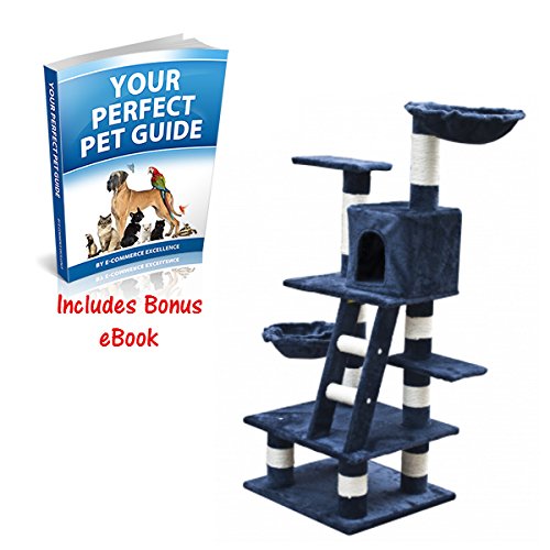 Fully Equipped Dark Blue Cat Play Tree Entirely Covered With Soft Plush And Sisal - Will Provide Your Cat With Its Own Slice Of Paradise In Your Home - Suitable For Multiple Cats By eCommerce Excellence
